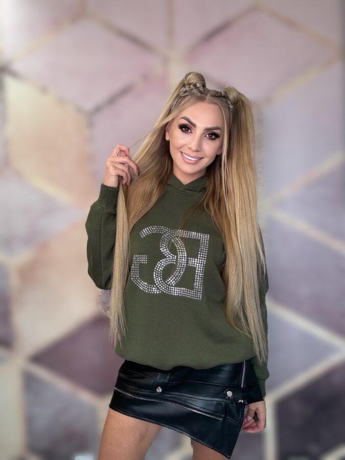 Na środku bluzy znajduje się efektowne logo marki, wyklejane dużymi kryształkami, które nadają jej wyjątkowego blasku i stylowego charakteru.