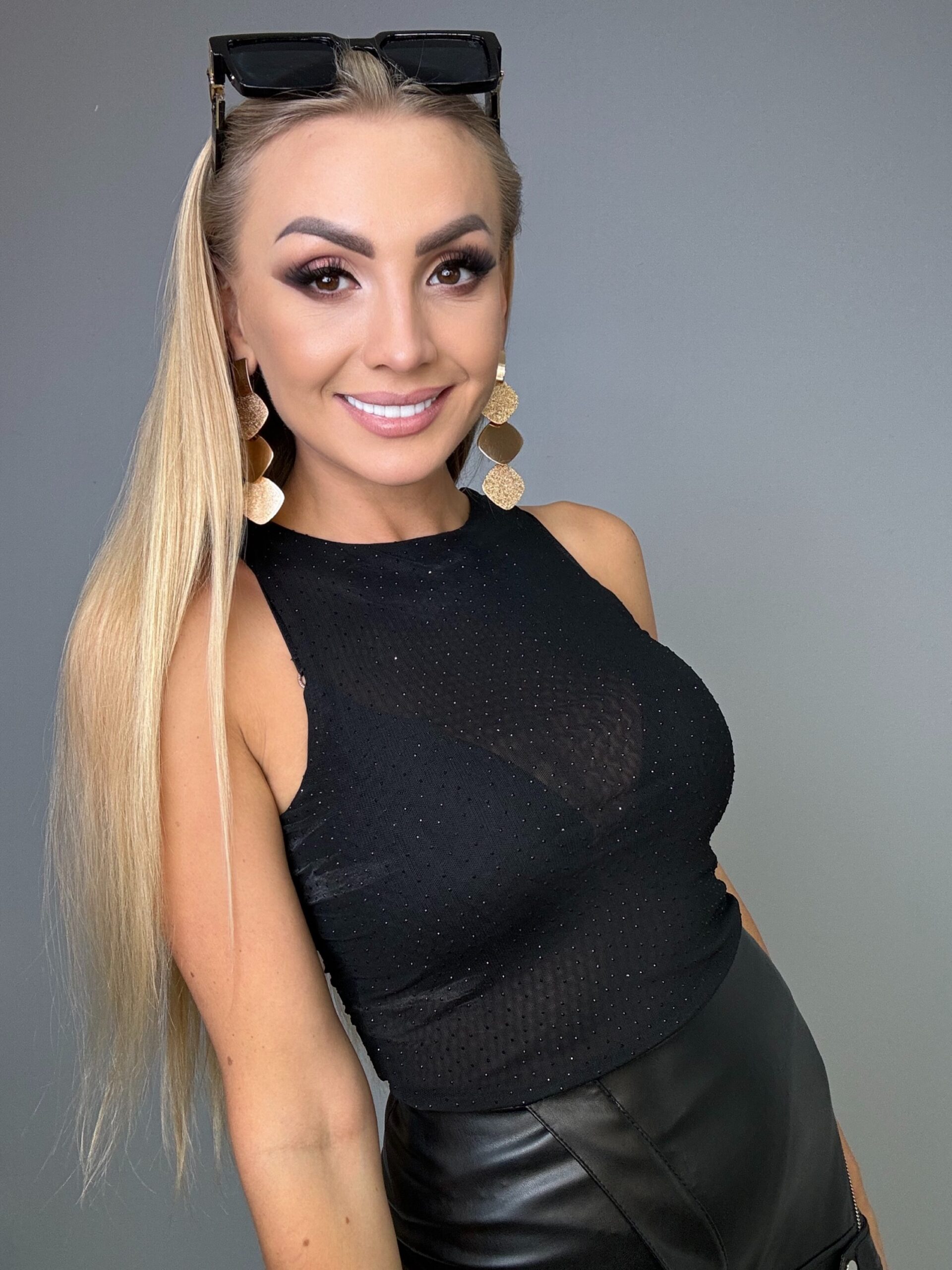 Body bez rękawów – podwójna siatka z czarną cyrkonią