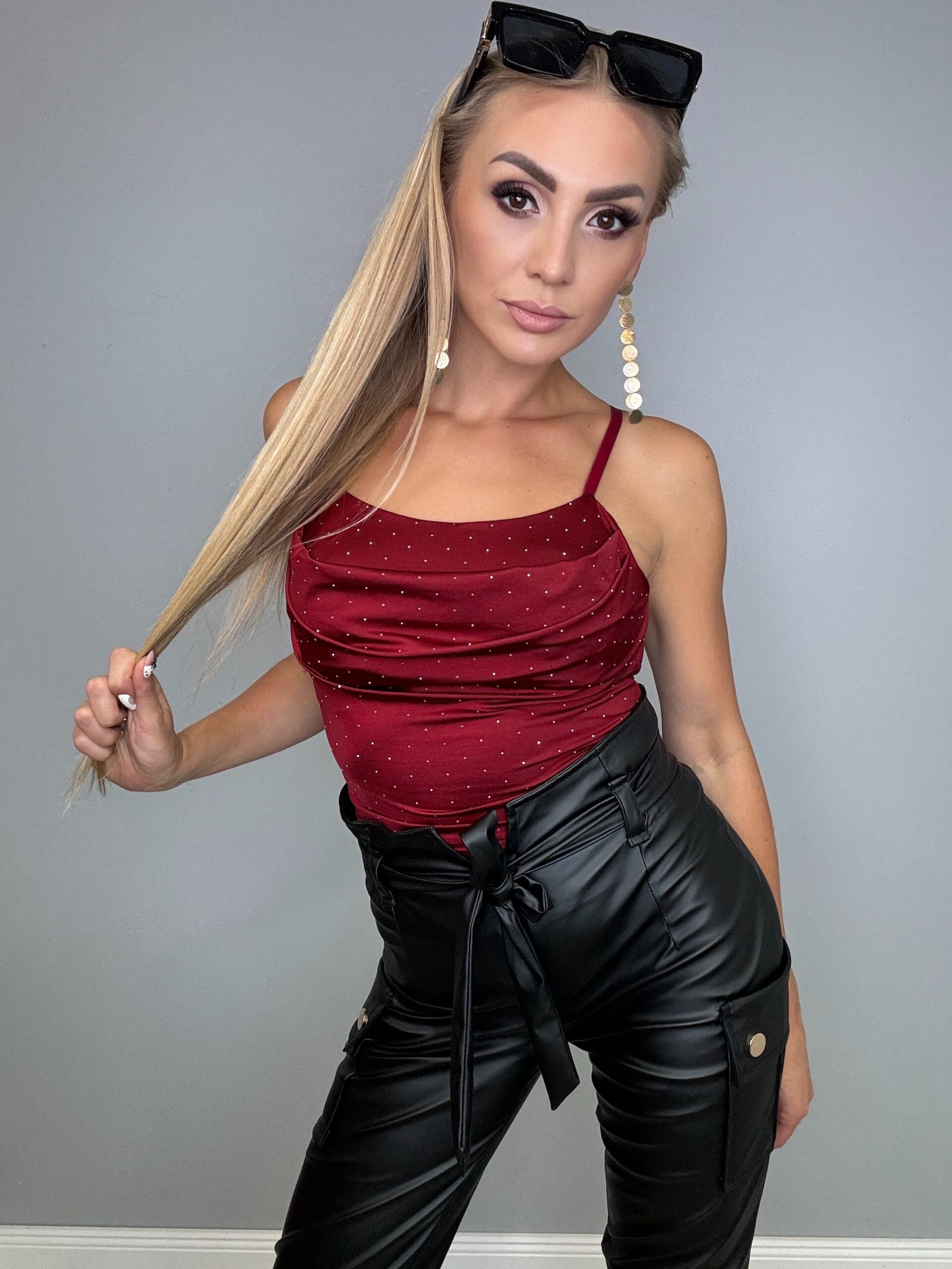 Strona główna » Sklep » Body bordowe na ramiączkach z cyrkoniami