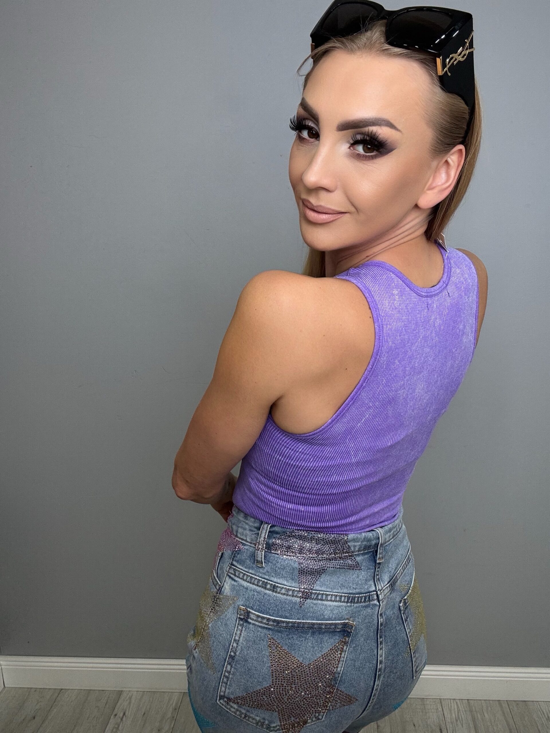 Wyjątkowe body w prążek o dekatyzowanym wykończeniu i pięknym, rzadko spotykanym odcieniu fioletu. Miękkie, bardzo elastyczne – idealnie dopasowuje się do sylwetki. Pasuje na rozmiary od XS do większej M. Komfort, styl i kobiecy vibe w jednym!