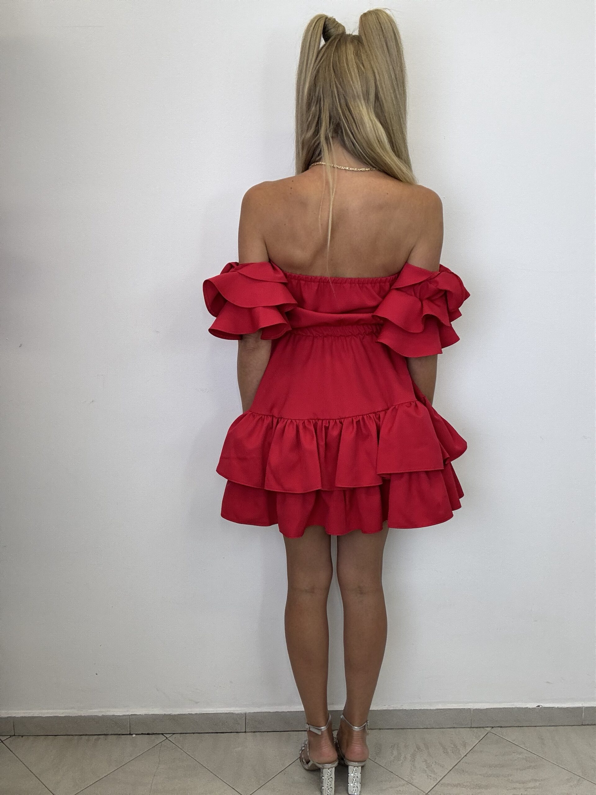 Sukienka Diva to połączenie klasyki z nutką romantyzmu. Hiszpański dekolt subtelnie odsłania ramiona, a wszyta w pasie gumka sprawia, że sukienka pięknie układa się na każdej sylwetce. Falbanki przy ramionach i na dole dodają lekkości i uroku, a rozkloszowany krój
