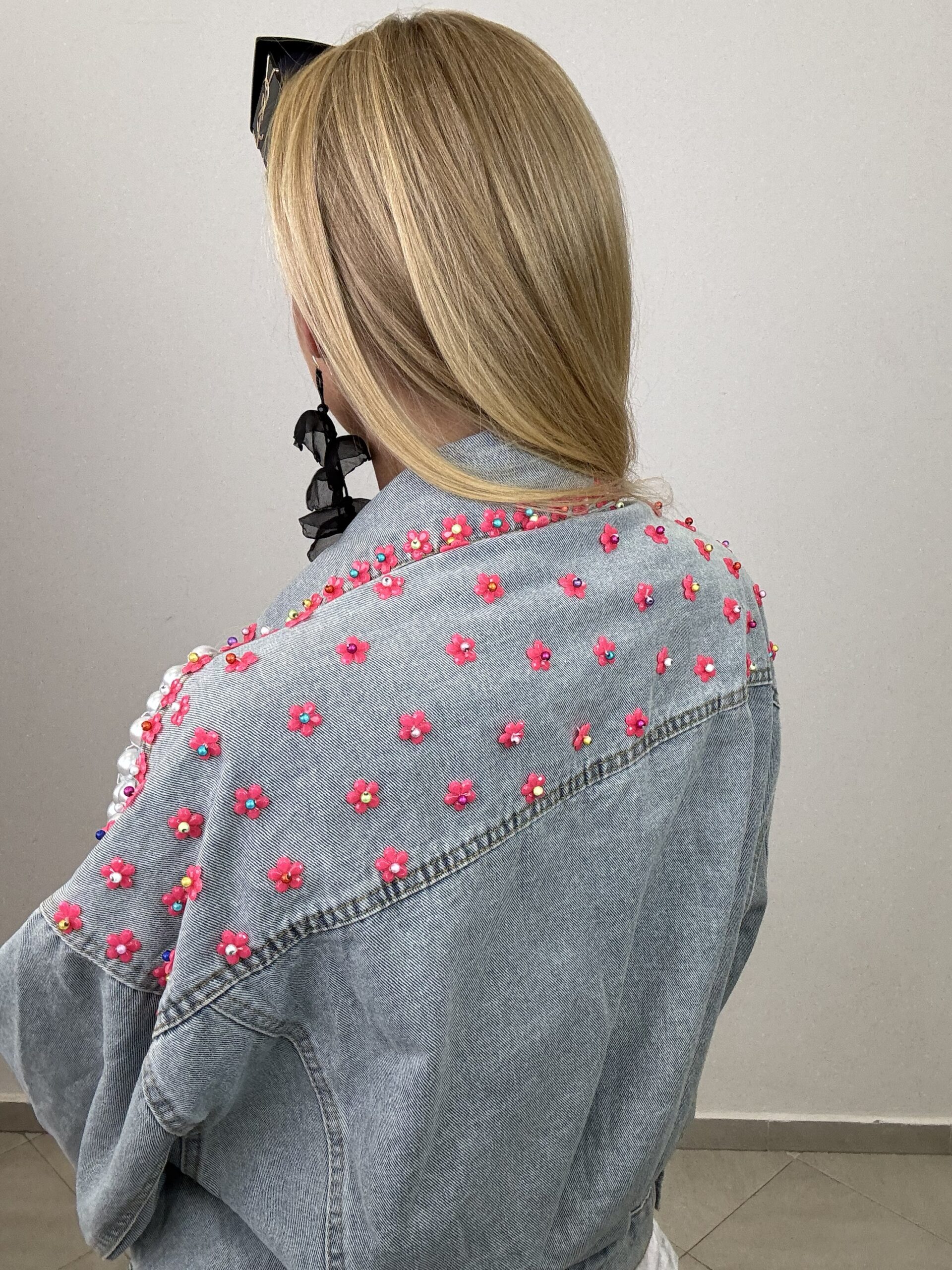 Strona główna » Sklep » Jeansowa Katana „Glam Flower” – unikat z perłami i kryształami