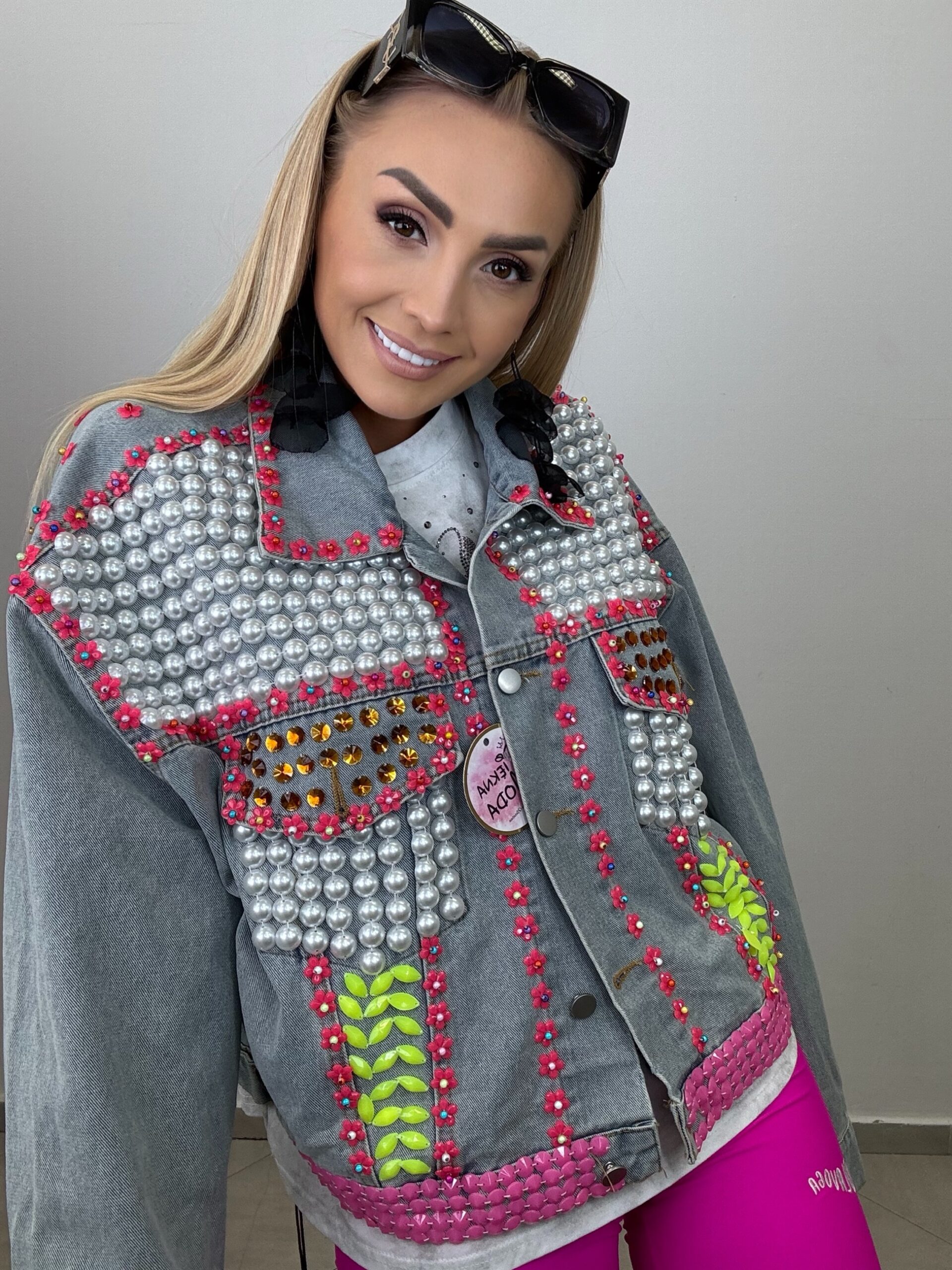 Szukasz katany, która przyciąga spojrzenia i dodaje pazura każdej stylizacji? Poznaj naszą jeansową katanę „Glam Flower”! To niepowtarzalny model pokryty perłami, kryształkami, cekinami i neonowymi akcentami. Tył zdobią ręcznie naszywane kwiatuszki 3D w odcieniach różu – idealny miks dziewczęcości i totalnego wow!