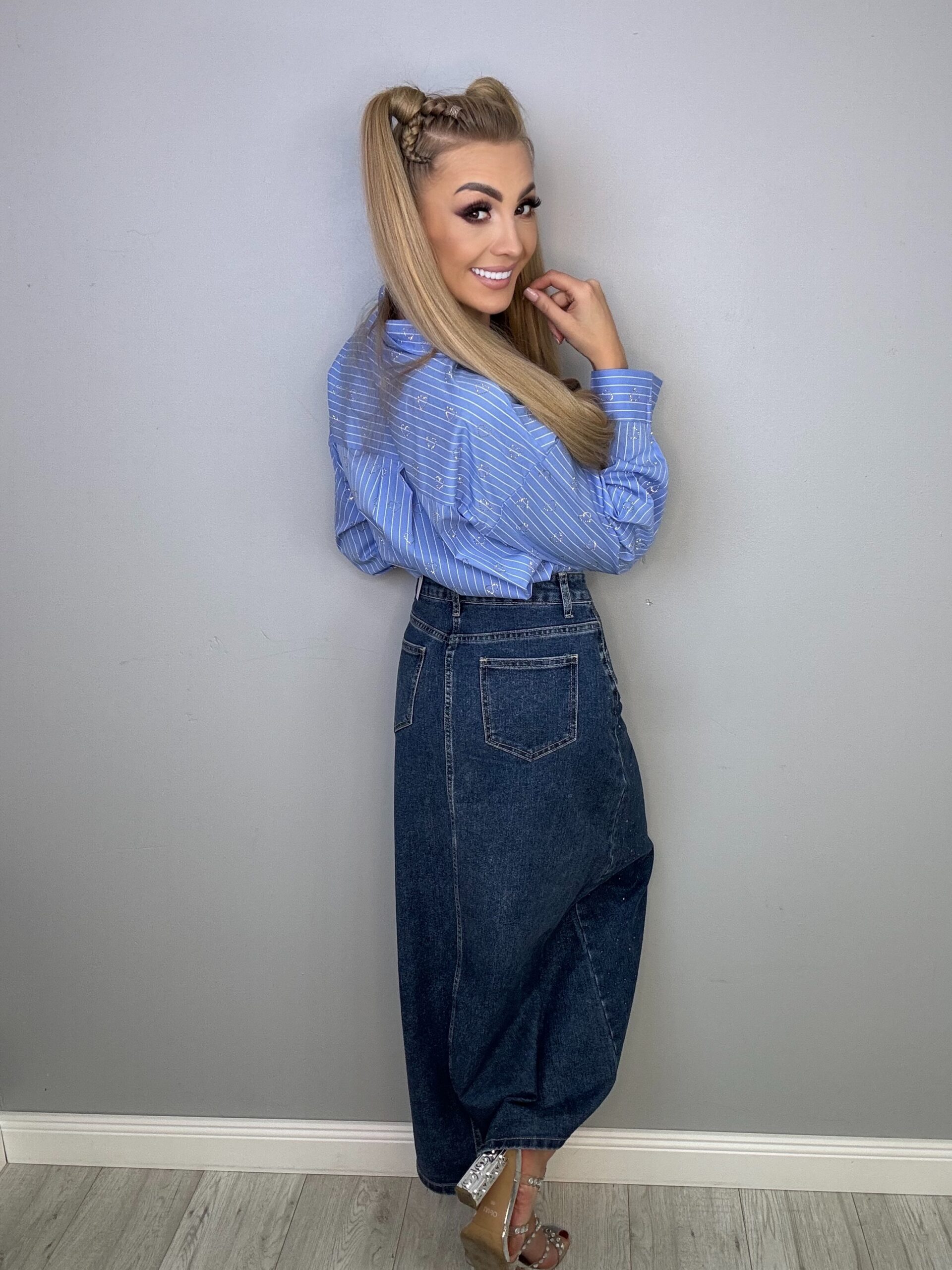 Ta stylowa długa jeansowa spódnica to must-have w szafie każdej kobiety ceniącej elegancję połączoną z wygodą!