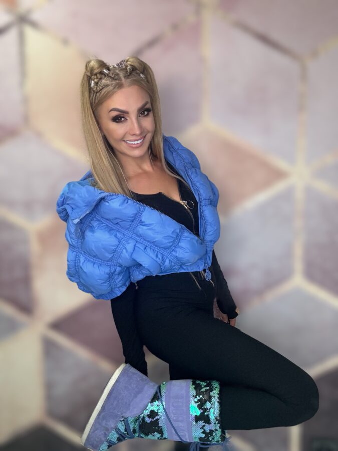 Na zdjęciu modelka ma 172 cm wzrostu i waży 59 kg.