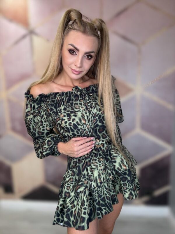 Kombinezon zachwyca swoją piękną kolorystyką, która łączy odcienie brązu, beżu i zieleni, przywodząc na myśl egzotyczne motywy leoparda. Wzór jest zarówno odważny, jak i elegancki, idealnie wpisujący się w najnowsze trendy mody. Dzięki tym kolorom i wzorowi, kombinezon wyróżnia się na tle innych strojów, czyniąc każdą kobietę wyjątkową i pewną siebie.
