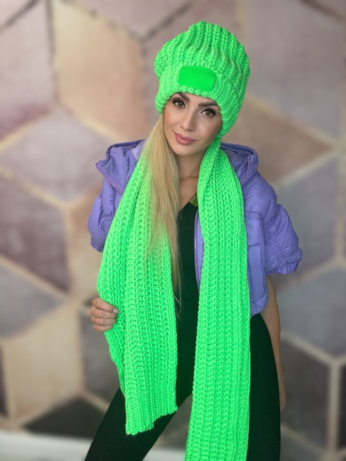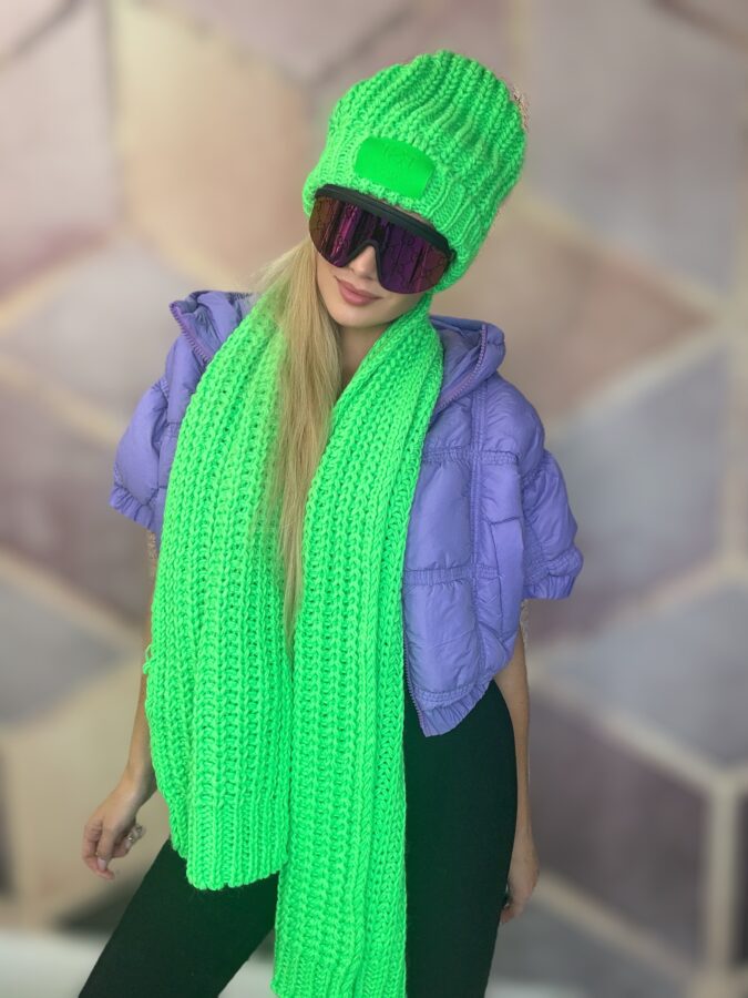 Komplet czapka + szal BASTET neonowa zieleń