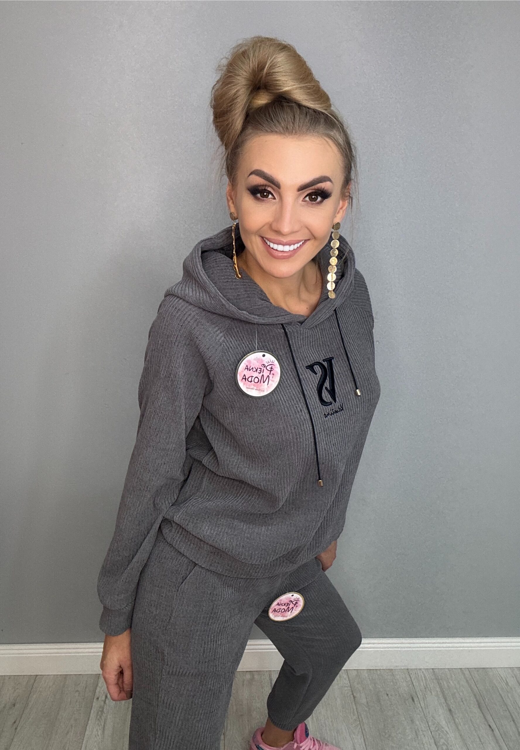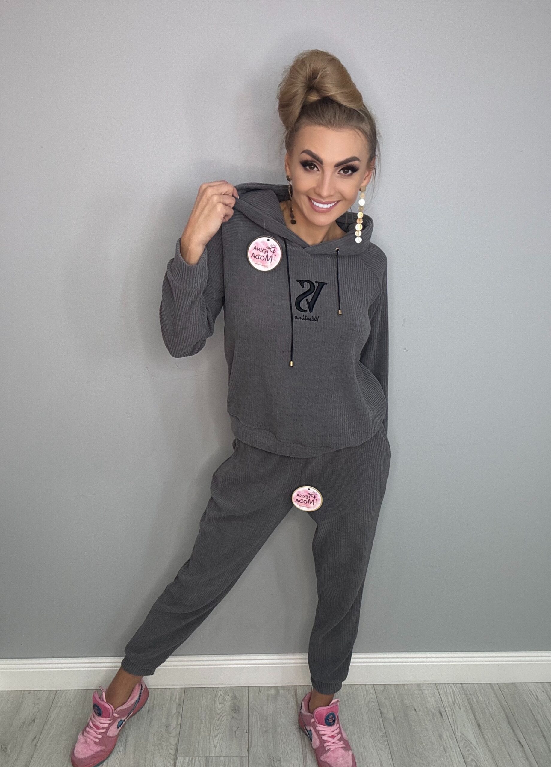 Strona główna » Sklep » Komplet dresowy prążkowany z wyszywanym haftem szary