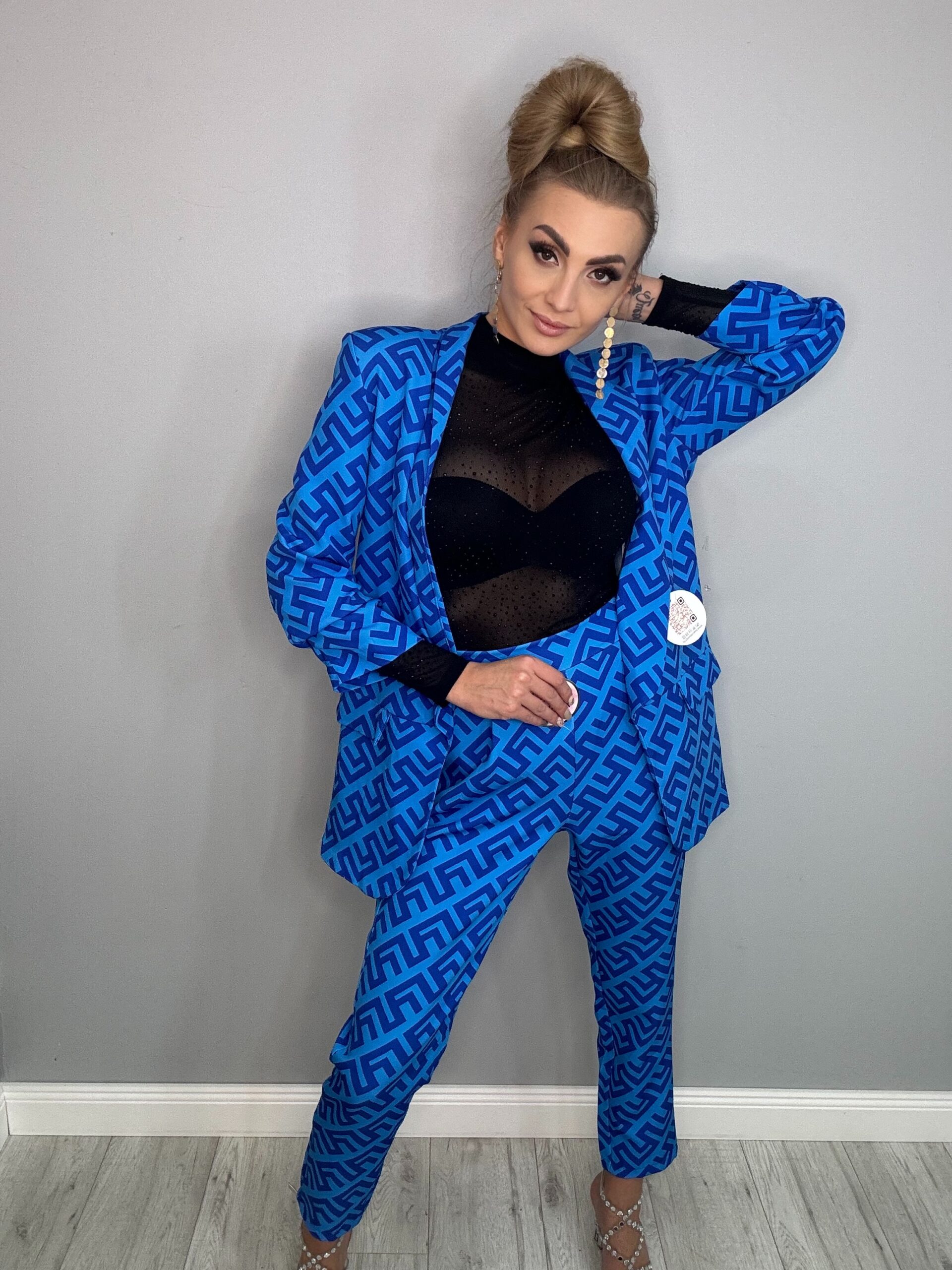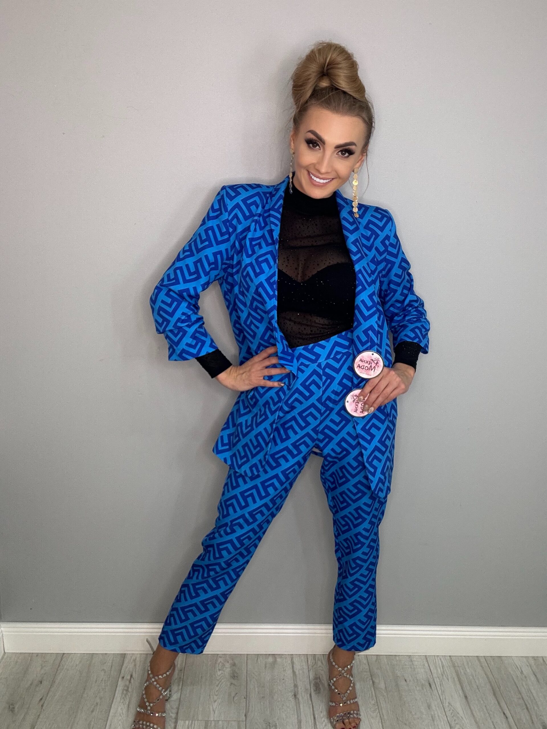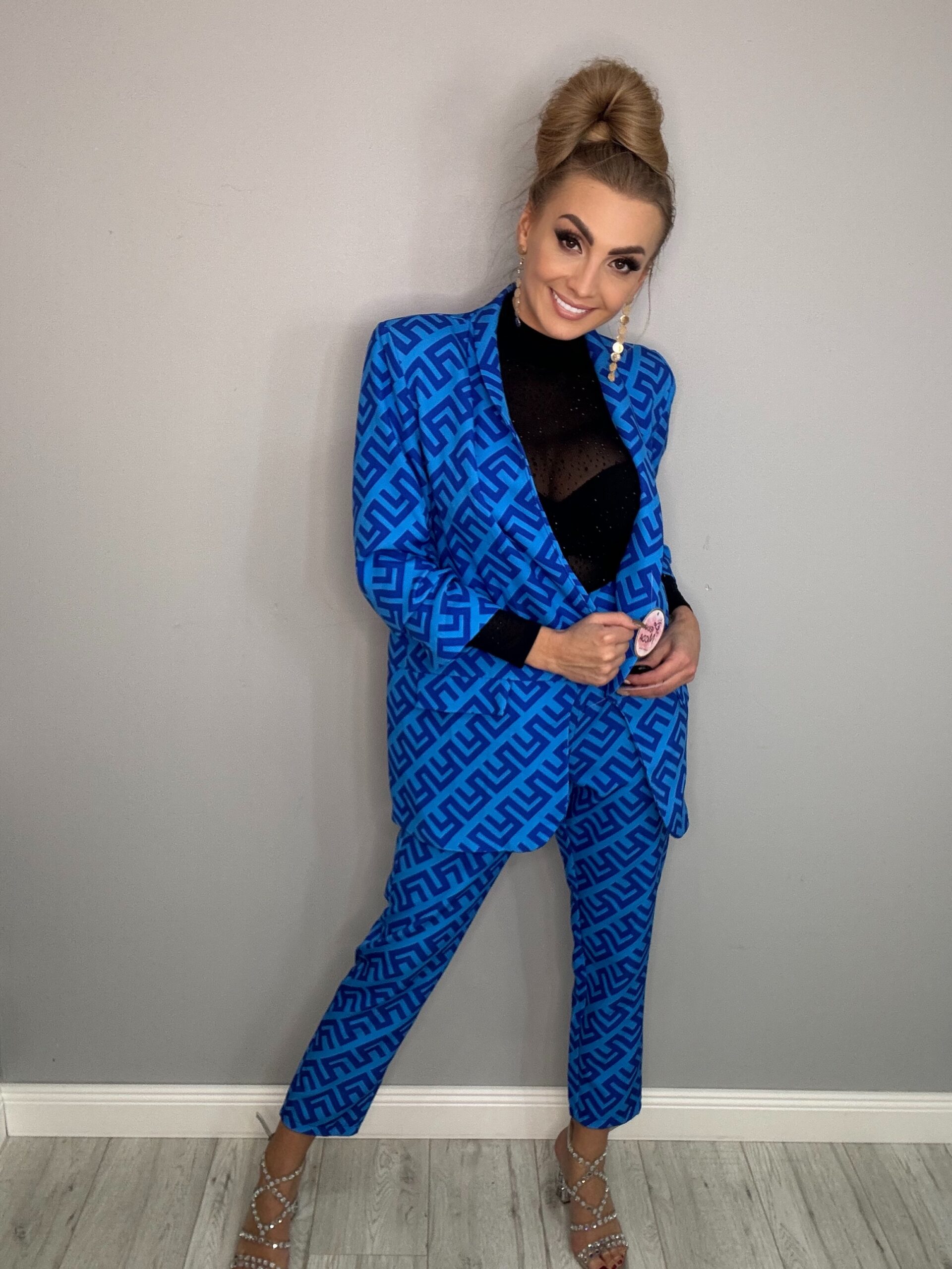 Stylowy 2-częściowy komplet z nadrukiem to idealny wybór dla kobiet, które cenią sobie modny wygląd i wygodę. Zestaw składa się z marynarki i spodni. Wykonany z lekkiego materiału, zapewnia komfort noszenia. Nadruk dodaje zestawowi unikalnego charakteru i stylu.