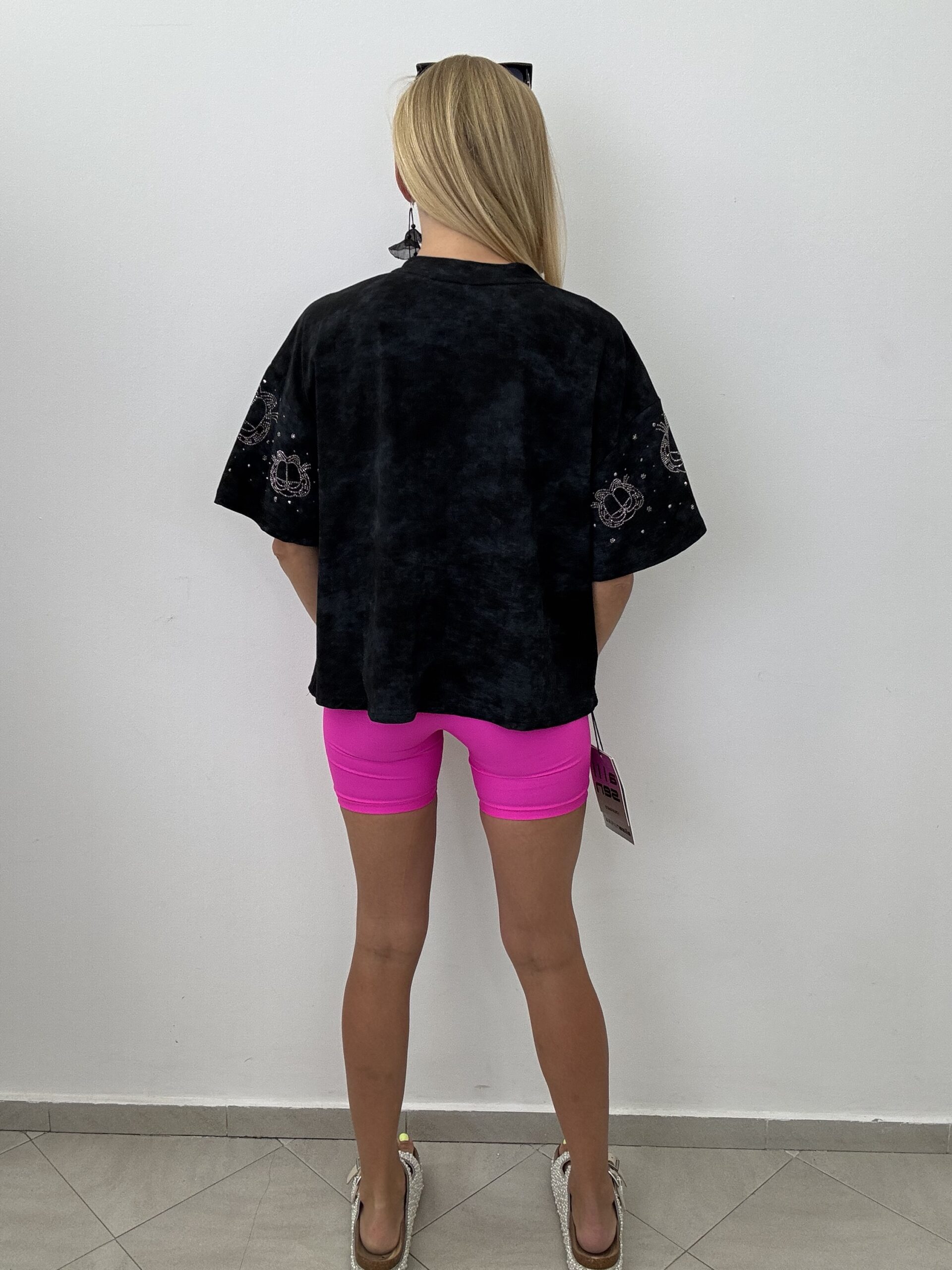 Czarna oversizowa koszulka z błyszczącym nadrukiem