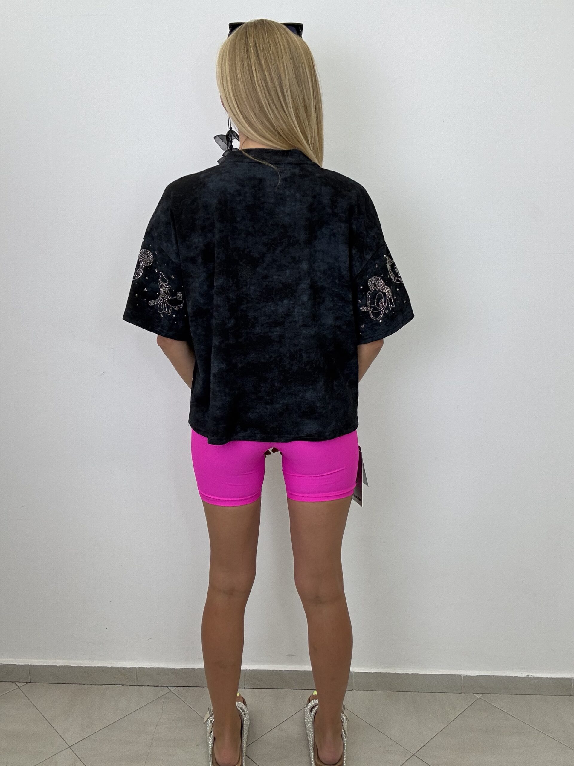 Czarna oversizowa koszulka z błyszczącym nadrukiem