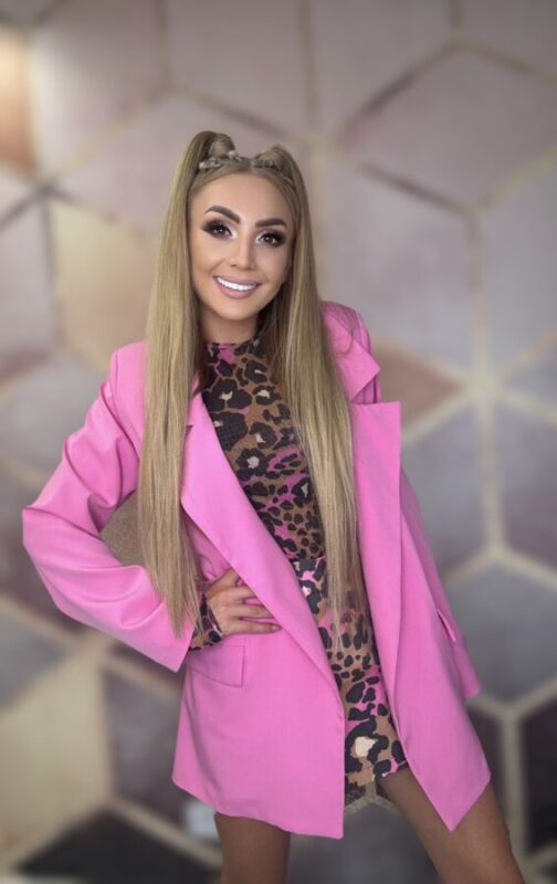 Na zdjęciu modelka ma 172 cm wzrostu i waży 59 kg.