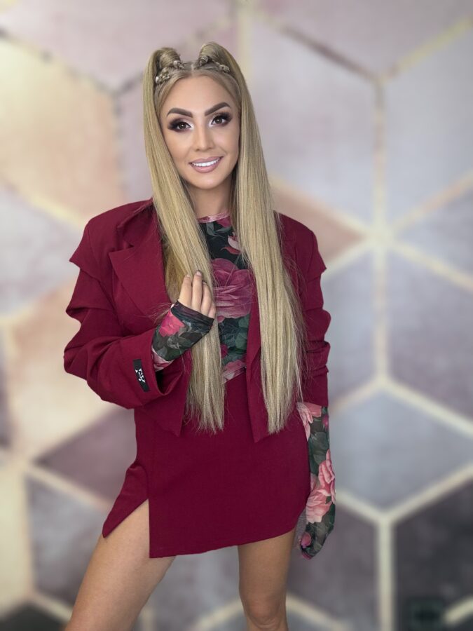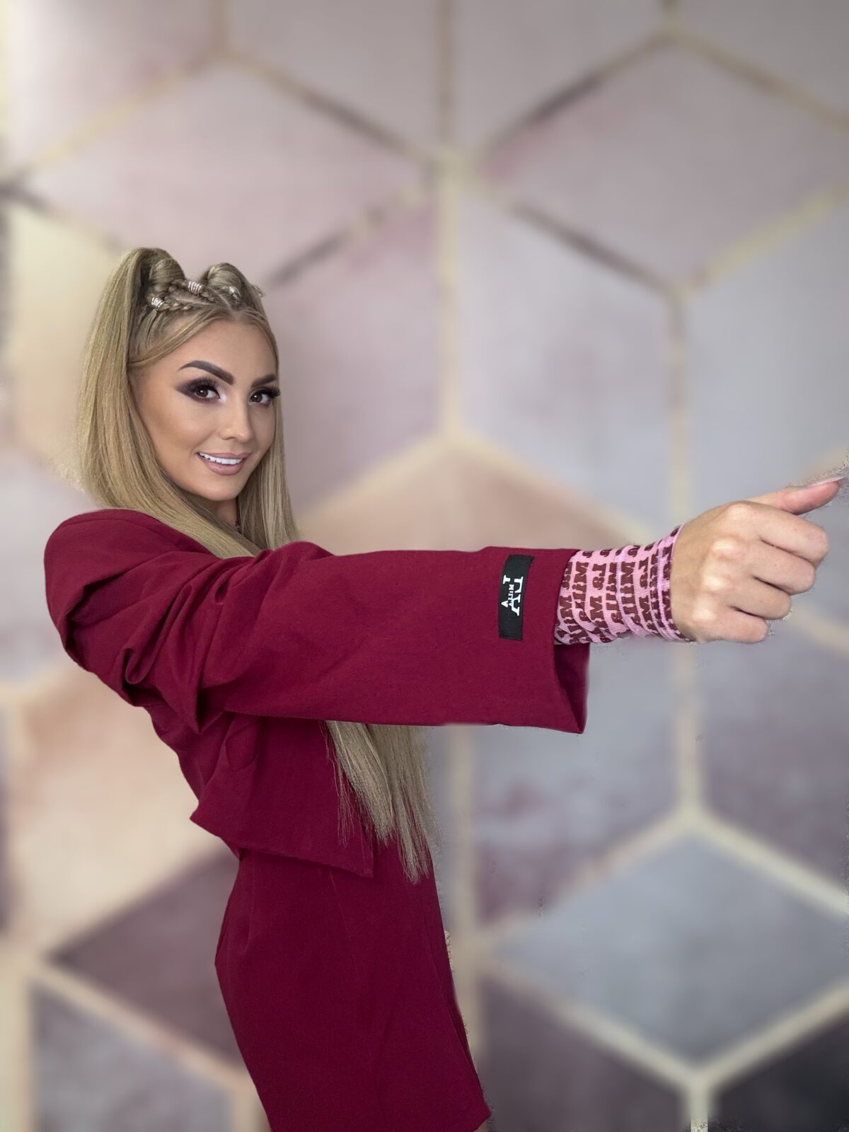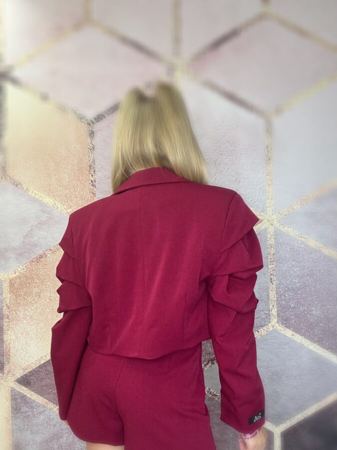 Strona główna » Sklep » Marynarka krótka z marszczeniami burgund