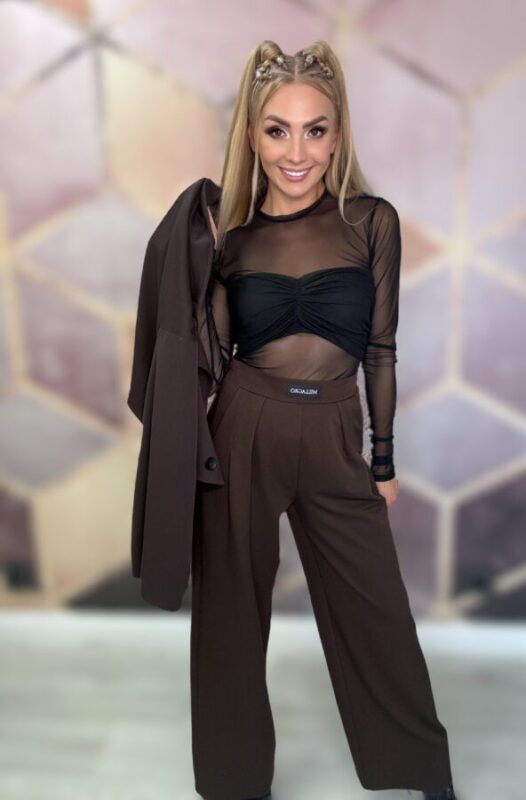 Marynarka o luźnym, oversizowym kroju. Model krótki, niezapinany, posiada poduszki na ramionach i podszewkę. Bardzo kobieca i wygodna, rozmiar uniwersalny. Idealnie pasuje w komplecie ze spodniami w tym samym kolorze. Istnieje możliwość zakupu całego zestawu w promocji.