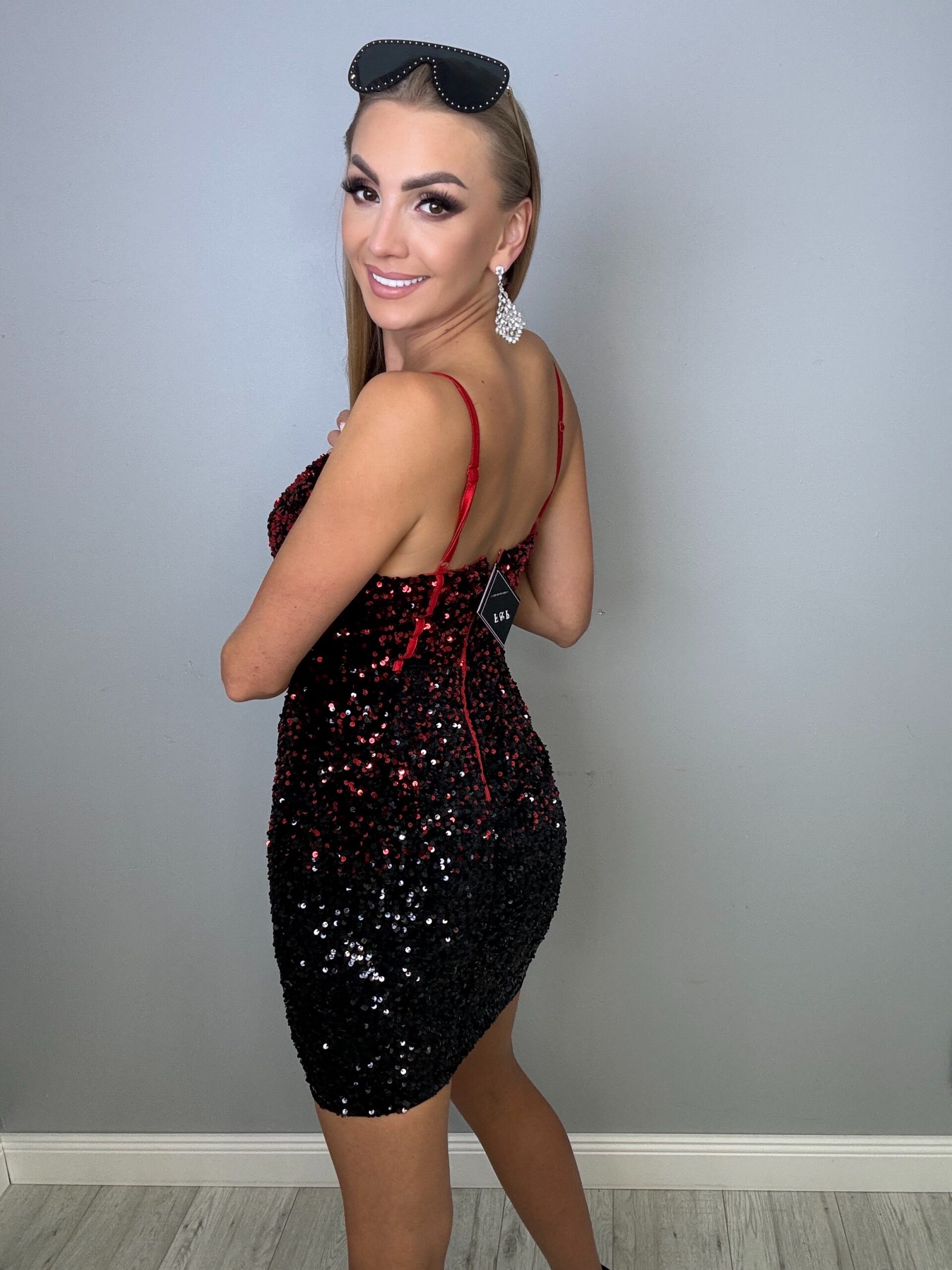 Strona główna » Sklep » Przepiękna sukienka cekinowa ombre czarno czerwona