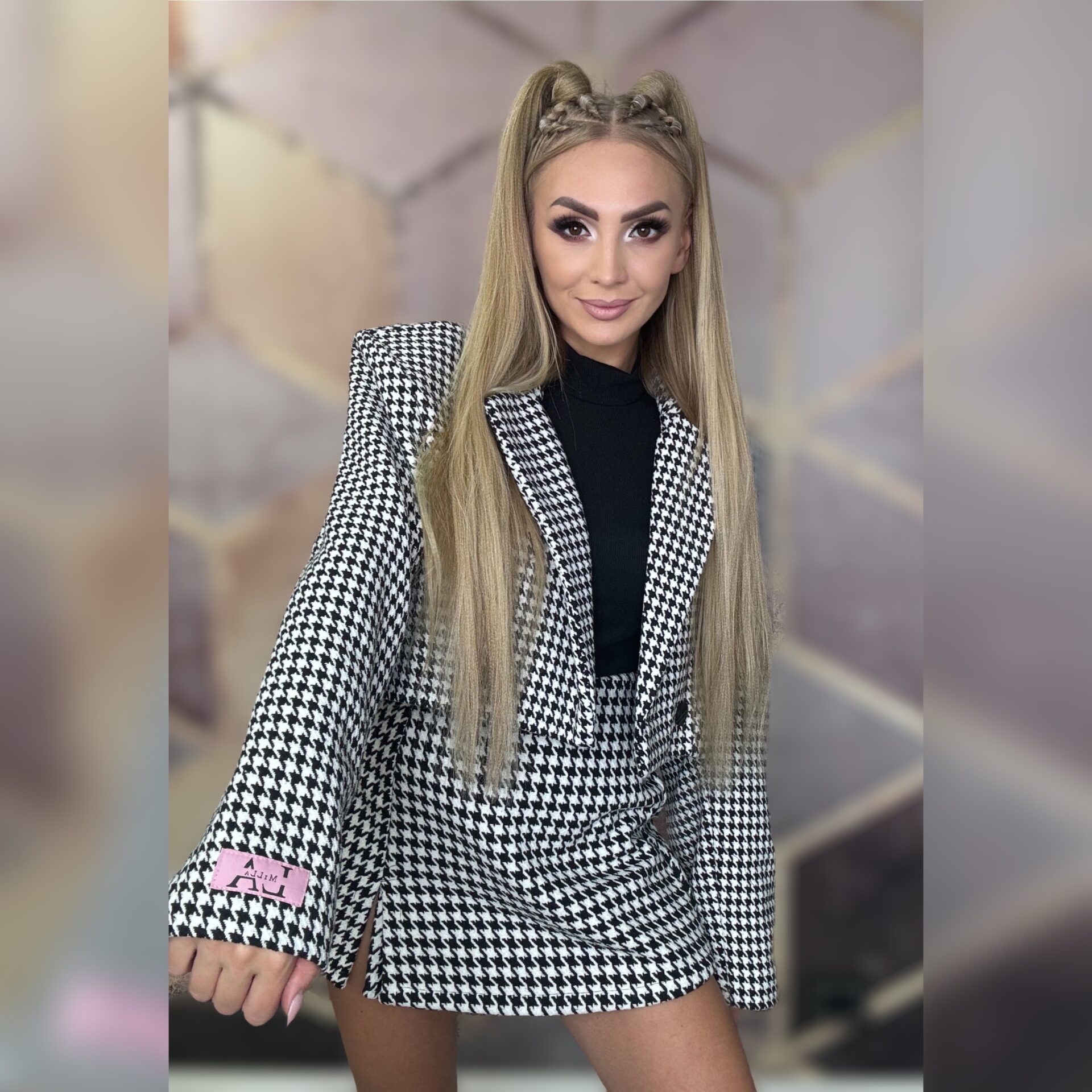 Spódniczko-spodenki w pepitkę to znakomita baza dla wielu modnych stylizacji. Gładkie wykończenie tkaniny w połączeniu z długością mini tworzy wyjątkowy efekt.