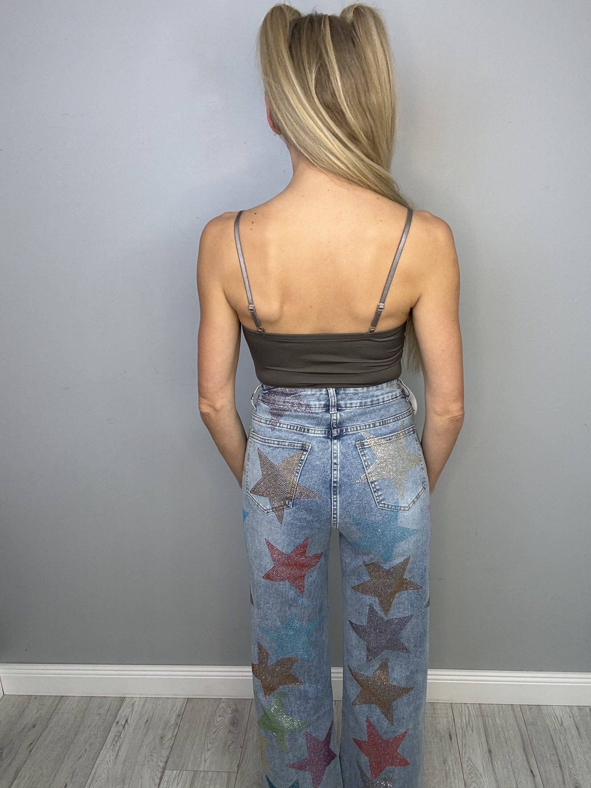 Strona główna » Sklep » Spodnie Jeansowe dzwony w gwiazdki