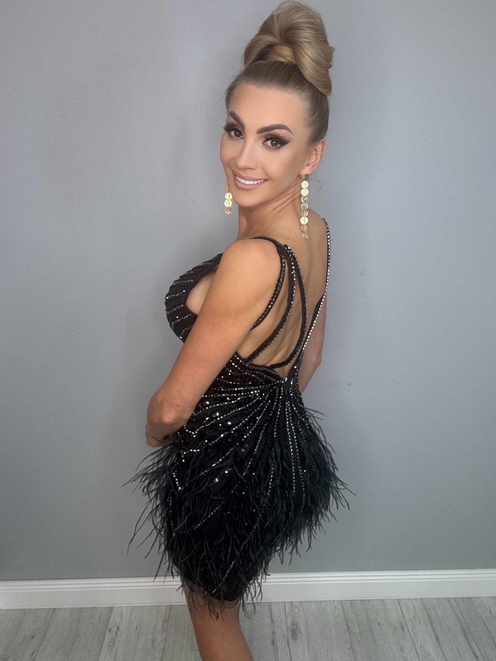 Strona główna » Sklep » Luksusowa Sukienka z Piórami Strusia
