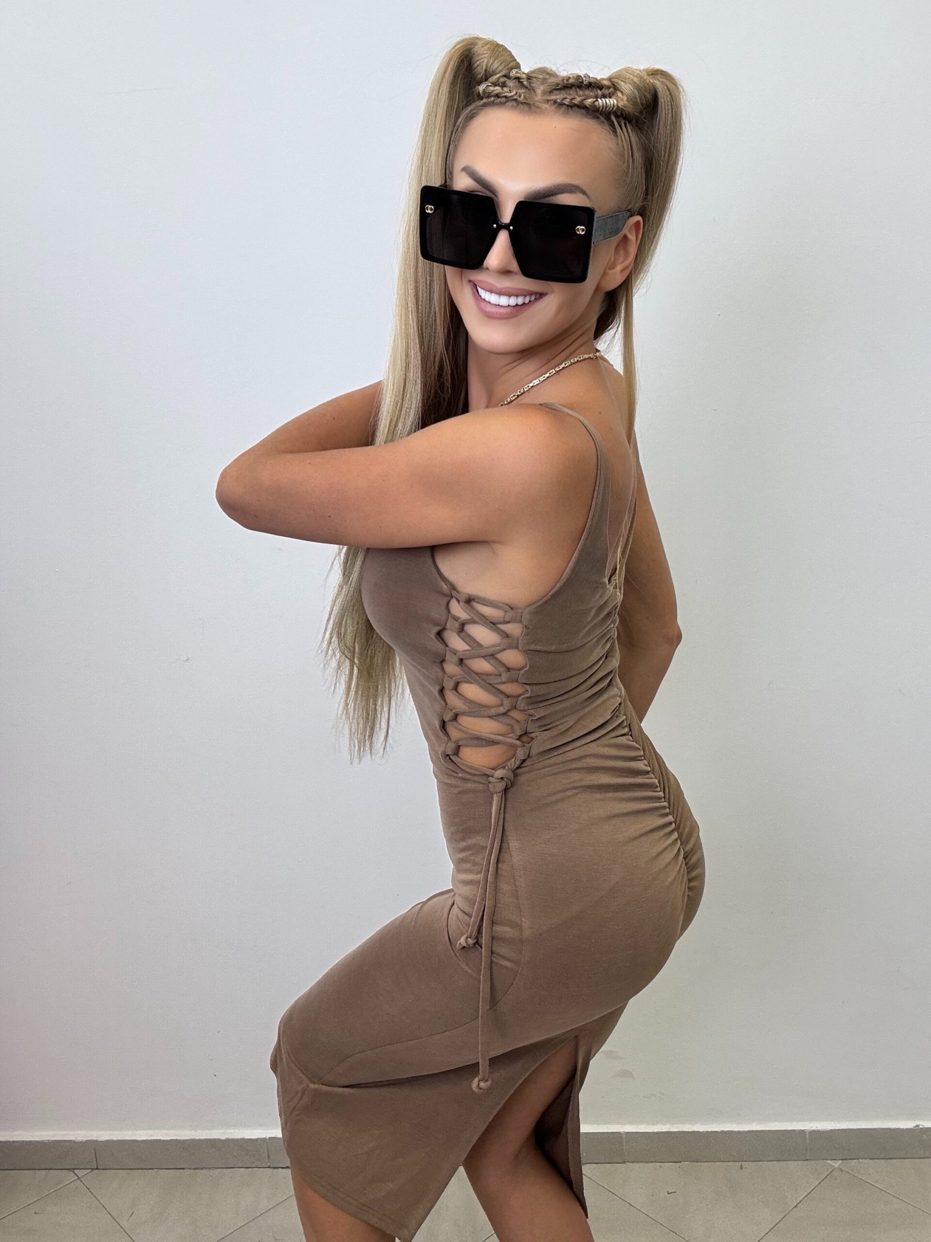 Strona główna » Sklep » Sukienka midi z wiązaniem beż KS by …
