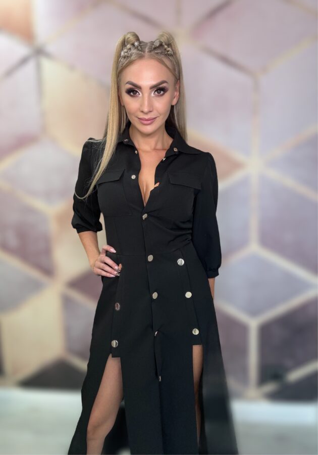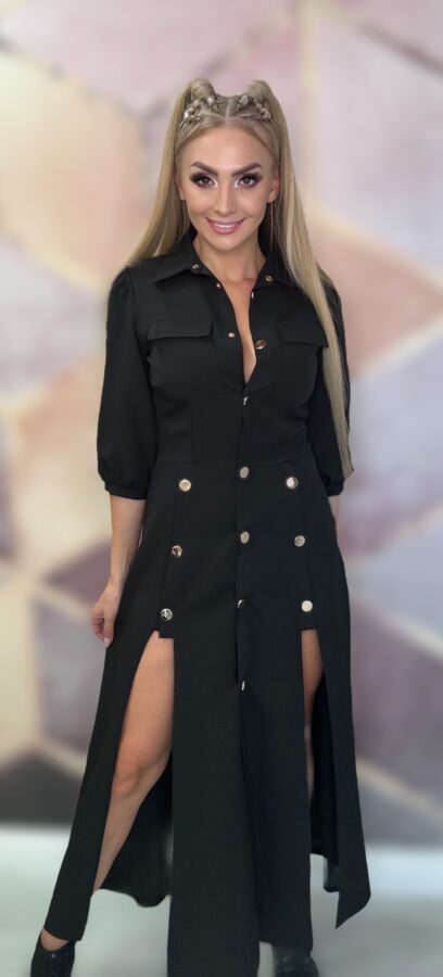 Świetna sukienka z rozcięciami, zapinana na guziki doda Ci wdzięku i sprawi, że poczujesz się niezwykle kobieco. Ma prosty dopasowany fason. Idealna na co dzien, jak i na imprezę, bankiet. Idealnie komponuje się ze szpilkami oraz ciężkimi butami. Musisz ją mieć.