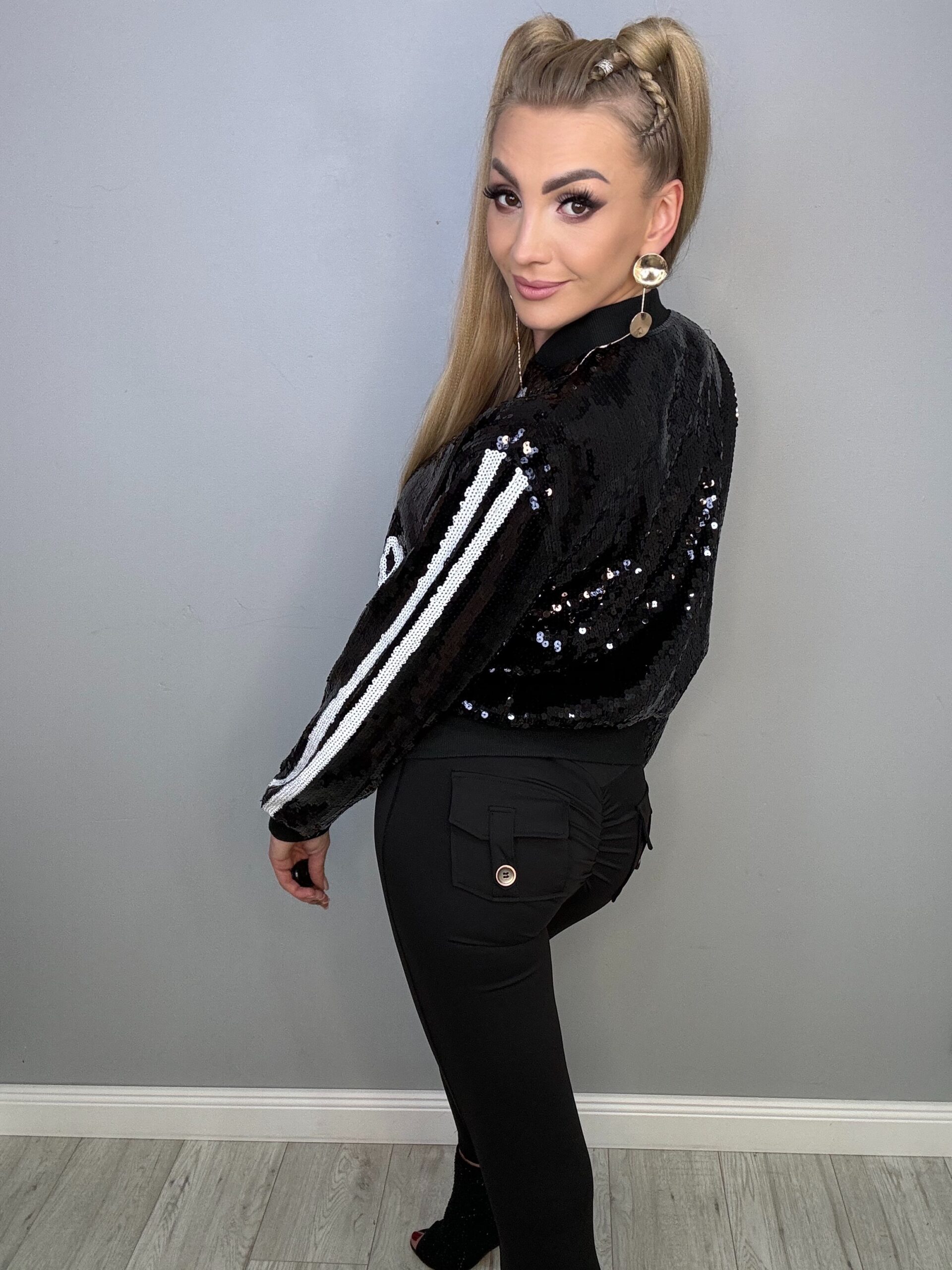 Strona główna » Sklep » Wiosenna Cekinowa Kurteczka Bejsbolówka Czarno-Biała